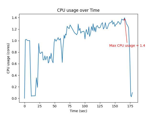 | Max CPU (core) | Mean CPU (core) | Max Memory (MB) |