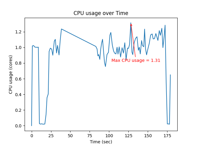| Max CPU (core) | Mean CPU (core) | Max Memory (MB) |