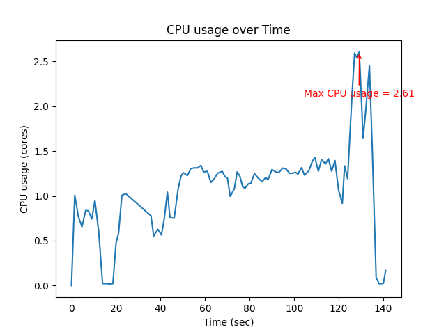 | Max CPU (core) | Mean CPU (core) | Max Memory (MB) |