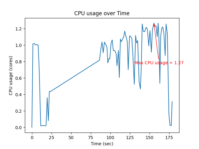 | Max CPU (core) | Mean CPU (core) | Max Memory (MB) |