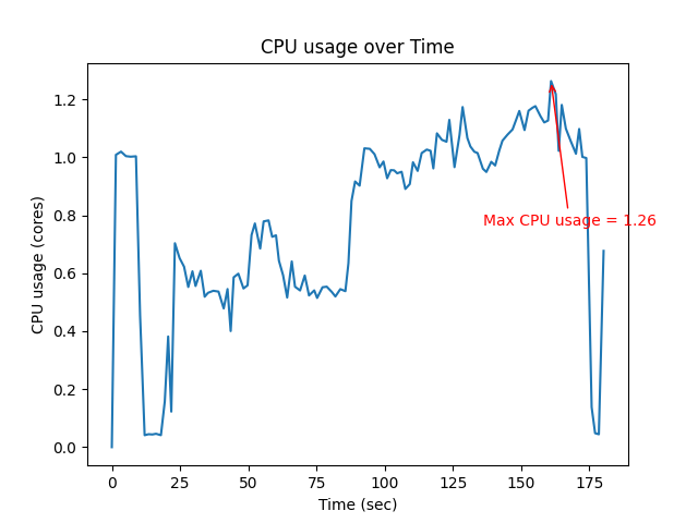 | Max CPU (core) | Mean CPU (core) | Max Memory (MB) |