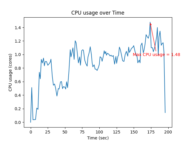 | Max CPU (core) | Mean CPU (core) | Max Memory (MB) |