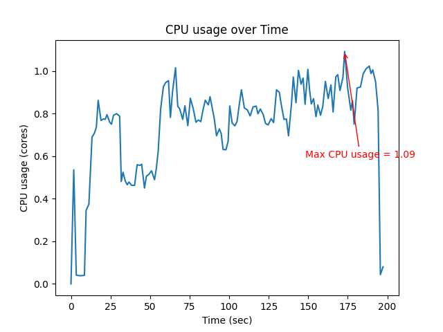 | Max CPU (core) | Mean CPU (core) | Max Memory (MB) |