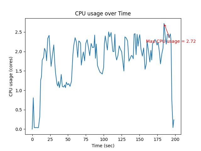 | Max CPU (core) | Mean CPU (core) | Max Memory (MB) |