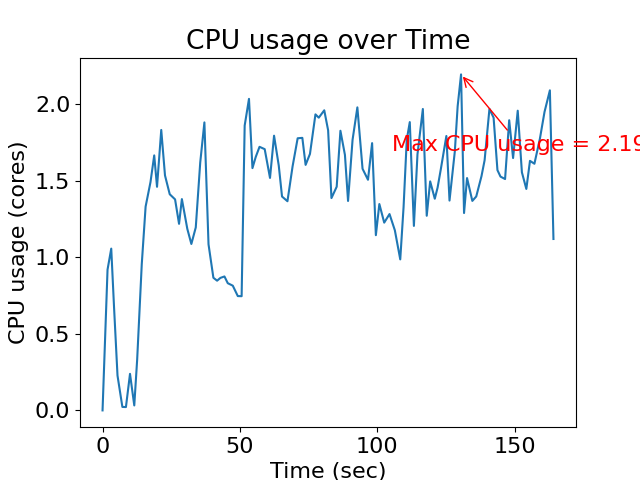 | Max CPU (core) | Mean CPU (core) | Max Memory (MB) |