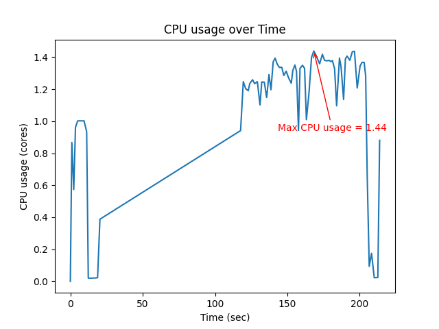 | Max CPU (core) | Mean CPU (core) | Max Memory (MB) |